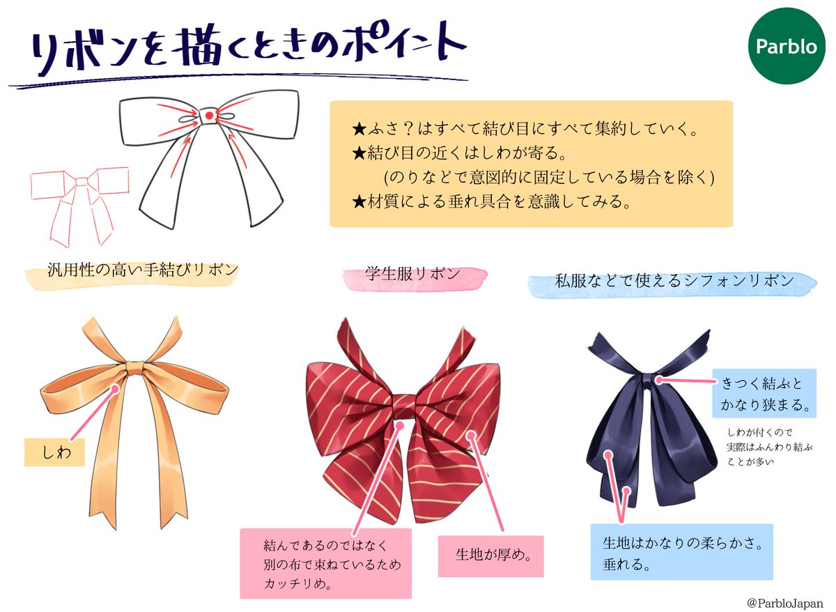 玄光社 超描けるシリーズ V Twitter 超描ネタ帳 細かい表現の難しいリボンですが 見えている部分のパーツを切り分けて考えてると 描きやすいですよ Kyachiさん Shirotumechika 著 ドレスの描き方 より T Co Psktwitj3o 超描ネタ帳 T